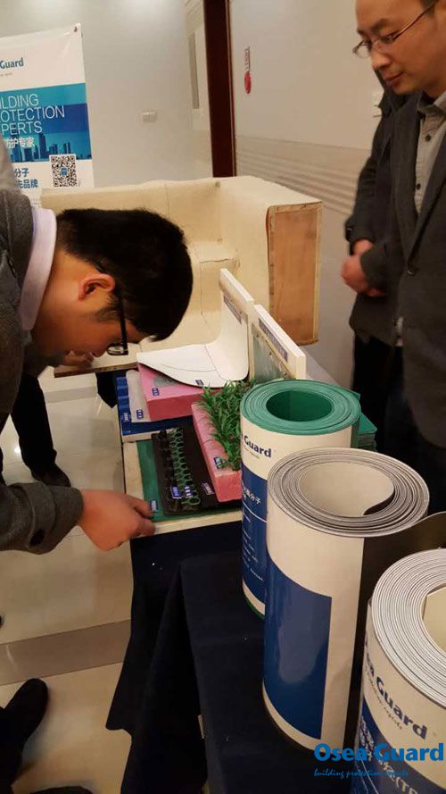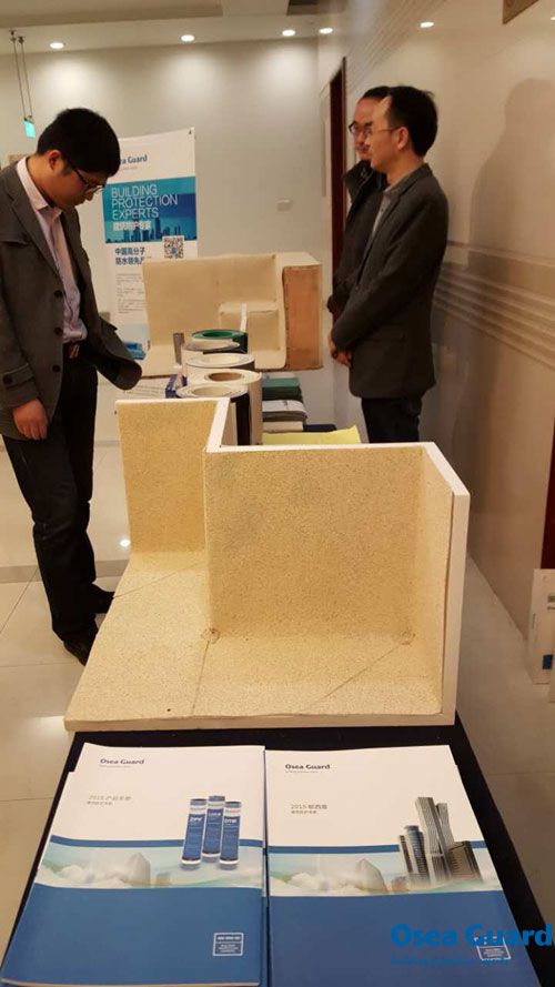 現(xiàn)場(chǎng)交流 此次會(huì)員大會(huì)歐西建科王洪波總經(jīng)理攜南京公司員工齊聚夢(mèng)都賓館,為大會(huì)助威,并在會(huì)議場(chǎng)外布置了展廳,供參會(huì)人員咨詢參觀。王洪波總經(jīng)理還被評(píng)為南京建筑防水行業(yè)2015年先進(jìn)個(gè)人。
