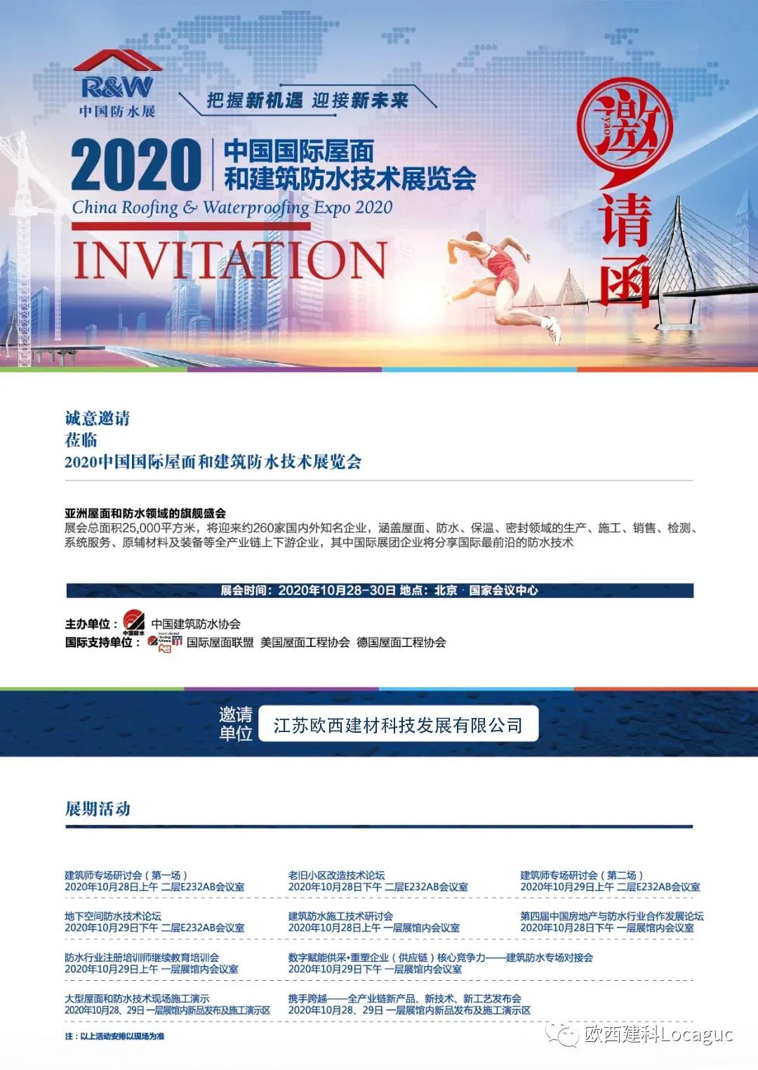 歐西建科此次展位號為:B區406展位,歡迎各界朋友前來參觀交流,也預祝2020中國防水展圓滿成功,希望本屆展會向社會展示防水行業疫情防控、復工復產及行業發展取得的顯著成效,呈現后疫情時期防水行業勇于面對困難、不斷實現突破的整體風貌,助力企業把握新機遇,迎接新未來!