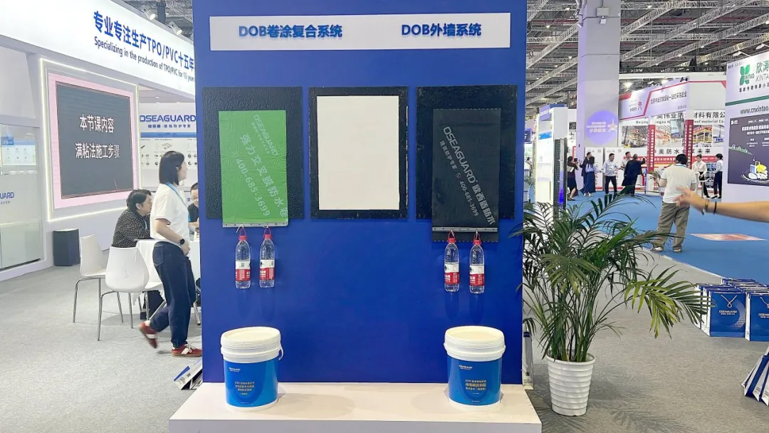 歐西盾防水位于5.2號館5016展位,由董事長王洪波帶領企業團隊參與此次展會。展會中所展示的產品十分豐富,涵蓋了 “金屬屋面防水系統”、“TPS 鋼塑一體瓦系統”、“DOB 卷涂復合系統”、“DOB 外墻防水系統”以及 “公民建防水系統” 等,充分體現了品牌的多元性。歐西盾防水依靠成熟且完備的防水理念和高品質的防水新產品,成功吸引了眾多人氣,眾多專業觀眾都被吸引過來,紛紛停下腳步進行咨詢。