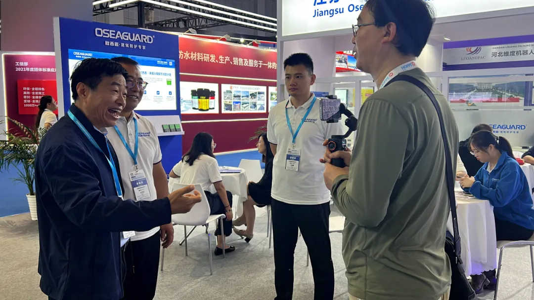 并且在現場對歐西盾防水董事長王洪波先生進行了采訪。通過沈教授和大隱于水先生的專業視角和影響力,讓更多人深入了解了歐西盾防水。無論是其先進的防水產品,還是專業的企業理念,都得到了充分展示。