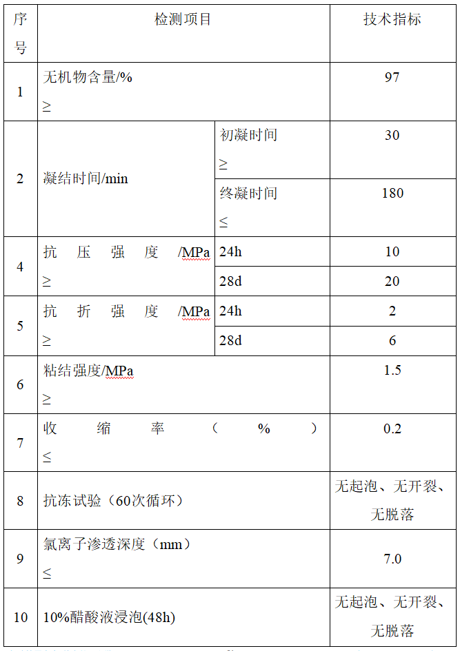 4. 具有快硬特點,可用于快速搶修工程。